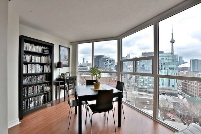 This Functional & Rarely Offered One Bedroom + Den Suite In The Heart Of King West Will Be Your Own Private Oasis In The City! Breathtaking & Unparalleled Views Of The City Skyline And Cn Tower. Modern Kitchen W/ Stainless Steel Appliances & Breakfast Bar. Spacious Living & Dining W/ Wood Burning Fireplace. Massive Ensuite Locker. Steps To King & Queen West Shops, Financial District, Groceries, Restaurants, Ttc At Your Doorstep. Minutes To Dvp And Gardiner