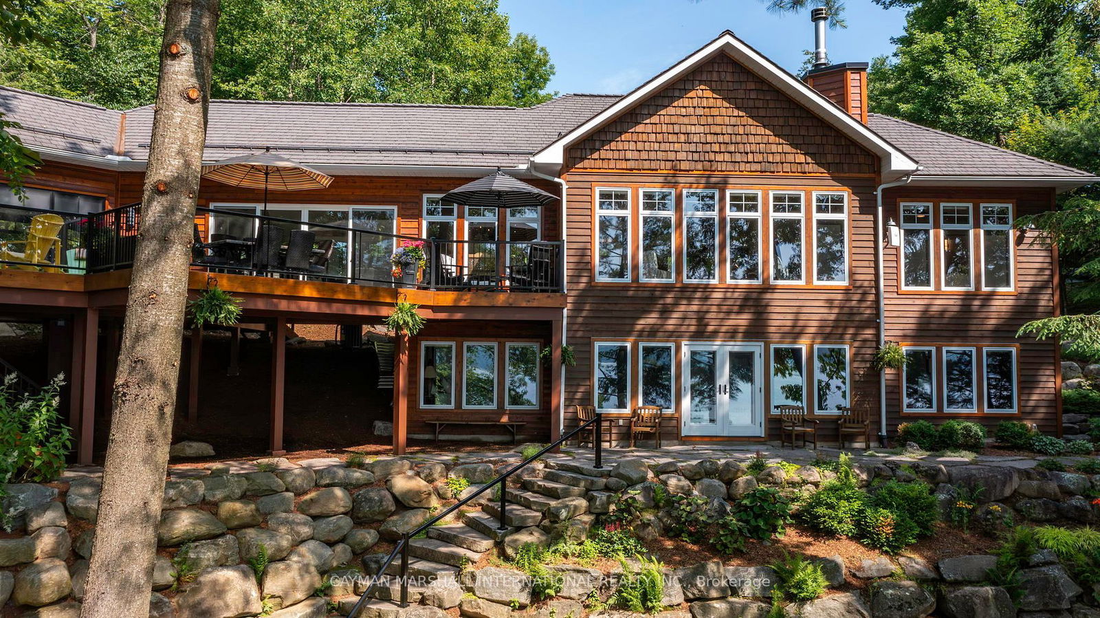 Welcome to your custom-designed Lakefront home nestled on the banks of prestigious Mary Lake. Step inside the grand foyer in this bungalow style beauty with Open concept kitchen/living/dining is perfect for entertaining with custom cabinetry, Miele and Wolfe appliances and prep island for the gourmet in the family. This combo then spills out into a grand Sitting Room with vaulted ceilings, walk-out deck and True Muskoka room with Custom Granite Rock imported for the Hot Tub3rd matching rock fireplace. The main floor primary suite is the perfect with its own fireplace and newly renovated 3P bath. The lower level has a walkout from Family room with the same stunning views and FOUR more spacious bedrooms. Lower level laundry and an oversized Utility & Mechanical room. Endless upgrades and superior construction! Mary Lake offers endless possibilities for outdoor recreation. Short distance away by boat or car to Huntsville. Many docking platforms and Sandy Beach.