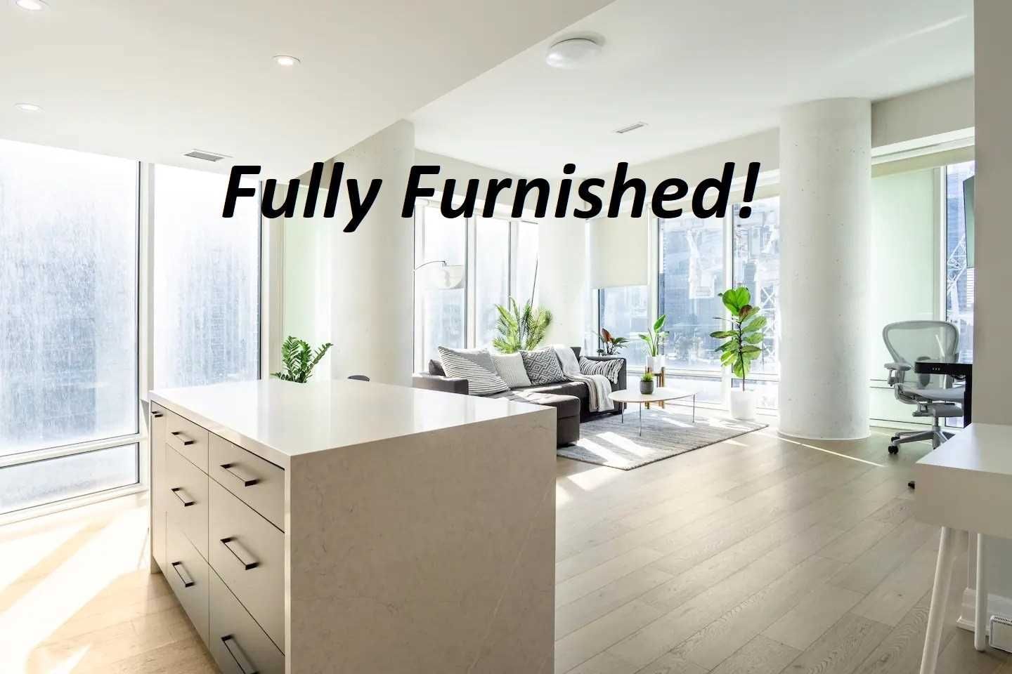 Welcome To L Tower! **Fully Furnished** One-Of-A-Kind 759 Sq Ft Sw Corner Suite W/10'Ceilings And Wall To Wall Windows! Tons Of Natural Light. Bright, Spacious Wide Open Living Area, Hardwood Throughout, Tastefully Renovated Kitchen W/Quartz Counters, Integrated Miele Appliances, And Waterfall Island W/Built-In Dining Table. Suite Is Accessible By Dedicated Low-Rise Elevators Servicing Only The First 11 Floors Of The Building. Just Bring Your Suitcase And Move In!