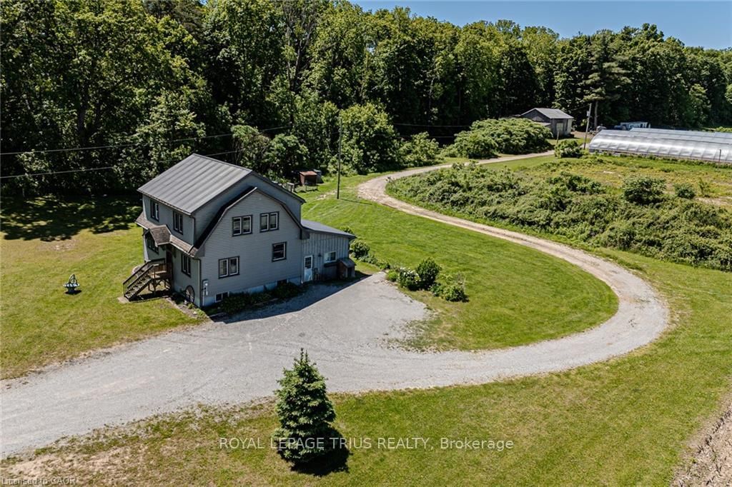 Looking for a sweet rural retreat? This cozy 3 bedroom home sits on 34 acres of farmland in Vittoria. Step inside the home to a spacious mud room, perfect for keeping the outdoor dirt contained. Step up to the sunroom with access to the welcoming and bright kitchen. This kitchen offers ample cupboard space, an island for extra room for baking and as a bonus a two-piece powder room conveniently located, no need to run upstairs! From the kitchen enter the large dining room with enough space for the whole family to gather. Next you will find the comfortable living room with windows all around providing plenty of natural light. Head upstairs now to the first two large bedrooms and the primary bedroom with its' gorgeous walk-in closet! Also up here is the main four piece bathroom with laundry. Downstairs a recreation room and bonus room offer extra space for entertaining. The utility room and storage room provide space for all those extras in life. This home was originally built around 1950 and moved to this property onto a new foundation in 2006. Windows, plumbing and electrical were upgraded in 2006. Looking for more? Head outdoors! This hobby farm offers privacy while being only a short drive to the beach and the amenities of town. The workable land (approximately 30 acres) is currently used for cash crops, apple trees (1 acre of newer Gala, Ambrosia and Honey Crisp), and two acres of Haskap berries. There are two 35x156 Decloet Poly covered greenhouses with separate power, motorized vents and separate well, small barn and several sheds. This beautiful property truly is a little piece of paradise in the country! Property subject to gas easement at front.