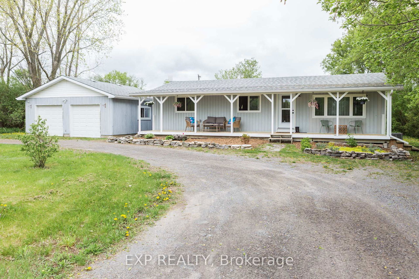 Welcome to this beautifully remodelled 1,000 sq. ft. bungalow with sweeping rural views. Perfectly situated on a half-acre lot this home is truly move-in ready. This charming property features 3 bedrooms and 1.5 bathrooms, all updated with stylish, modern finishes that blend functionality with a cozy, inviting atmosphere. Inside, you'll find an open-concept living area with all new flooring and a sleek kitchen complete with stainless steel appliances, farmhouse sink, two-tone cabinetry, and plenty of counter space for meal preparation. With cathedral ceilings throughout, the living and dining areas are bathed in natural light, creating an airy and welcoming environment. Outside, the half-acre lot provides plenty of room for gardening, relaxing, and outdoor activities, with a sense of privacy and tranquil views. If you are looking for more living space, the detached double garage (538 sq.ft) is fully insulated with power, updated windows, and a covered rear patio space offering so much potential. Whether you're looking for a workshop, studio, or planning to convert it into a second unit (subject to zoning approval), the possibilities here are endless with lots of parking in the double-entrance circular drive. Recent updates include new stainless steel appliances (2022), basement waterproofing & sump (August 2022), septic tank (October 2023), all new windows and doors (July 2023), new propane furnace with central air (December 2021), updated electrical and plumbing (January 2022), new roof shingles (October 2024). There really is nothing for you to do here but to plan your garden for this spring!!