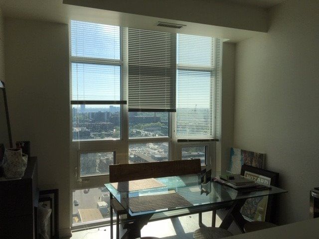 Stunning One Bed Unit In The Heart Of Liberty Village With Separate Dining Space, Unobstructed Beautiful Lake View. 638 Sq.Ft Laminate Floor Thru Out, Granite Kitchen Counter Top, Bright & Spacious Living Room. Separate Dining Area. Stainless Steel Appliances. Amenities Include Bowling Alley, Indoor Pool, Theatre, Party Room, 24 Hr Concierge, 24 Hr Metro Supermarket & Restaurants In The Village.