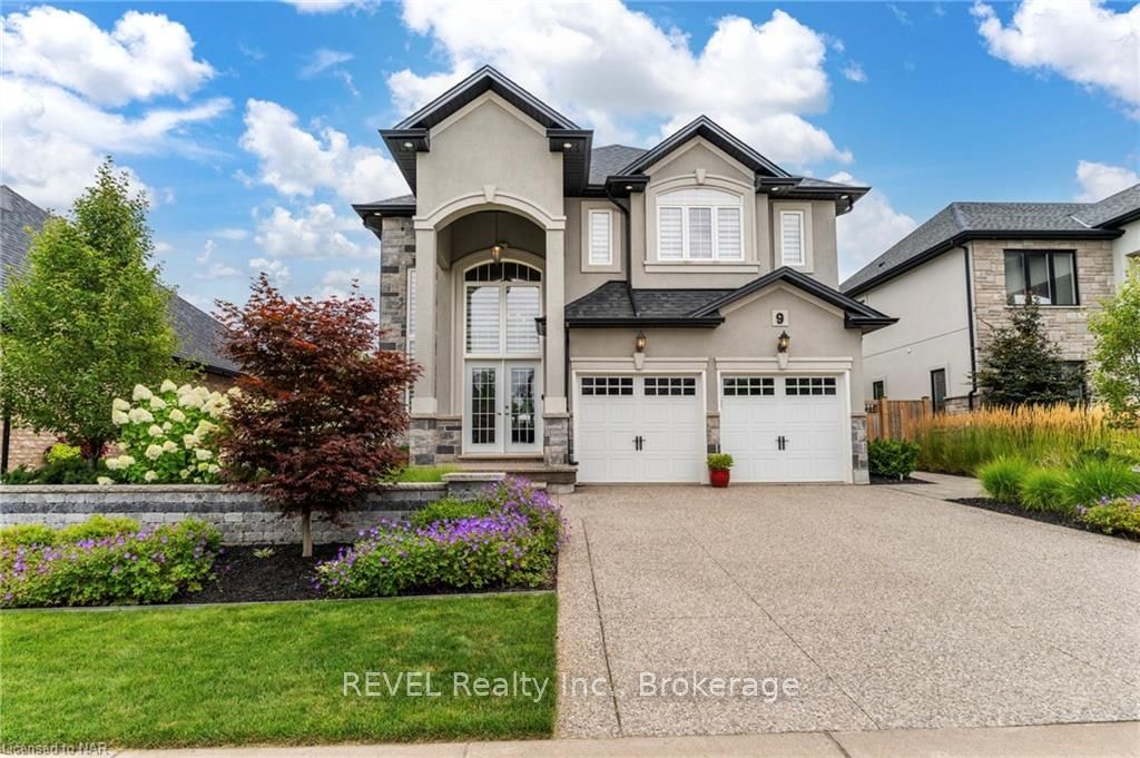 Your dream home is ready to make it your own! Welcome to 9 Angels Drive, a luxury, custom built 2 storey home perched in Niagara-on-the-Lake's sought after St. Davids community. This exceptional property boasts a stunningly designed backyard oasis, a haven for those looking to upscale their lifestyle and enjoy the finer things in life. Step inside to discover soaring ceilings in the grand foyer, a spacious yet cozy sitting room that flows effortlessly into the open concept dining room & the luxurious kitchen fit for a chef. Accented by timeless hardwood flooring, and illuminated by the large windows that flood the space with natural light. The upgraded kitchen, adorned with granite countertops and stainless steel appliances exudes sophistication and offers you the perfect backdrop for family meals & creating memories. On the second level, 4 generously sized bedrooms, an elegant 4pce bathroom with double sinks awaits, giving you the comfort and seclusion you and your family deserve. The primary suite of your dream is just around the corner, complete with a 3pce en-suite bathroom and the walk-in closet you've been waiting for, with floor to ceiling cabinetry & shelving. The backyard steals the show with dual covered patios, an outdoor kitchen plus a heated pool - your own private, tranquil retreat for socializing, relaxation & unwinding. Nestled in NOTL, you'll look forward to the scenic landscapes, renowned wineries and so much more. Immerse yourself in arts, culture and world class dining, embraced by a tight-knit community. Crafted with luxury and meticulous attention to detail, this custom-built gem embodies the essence of refined living. Embrace the allure of Niagara-on-the-Lake and indulge in the sophisticated lifestyle of this extraordinary property. BONUS: Basement features proactive interior Waterproofing with the DRY-CORE System and battery backup sump pump, ensuring complete peace of mind for years to come.