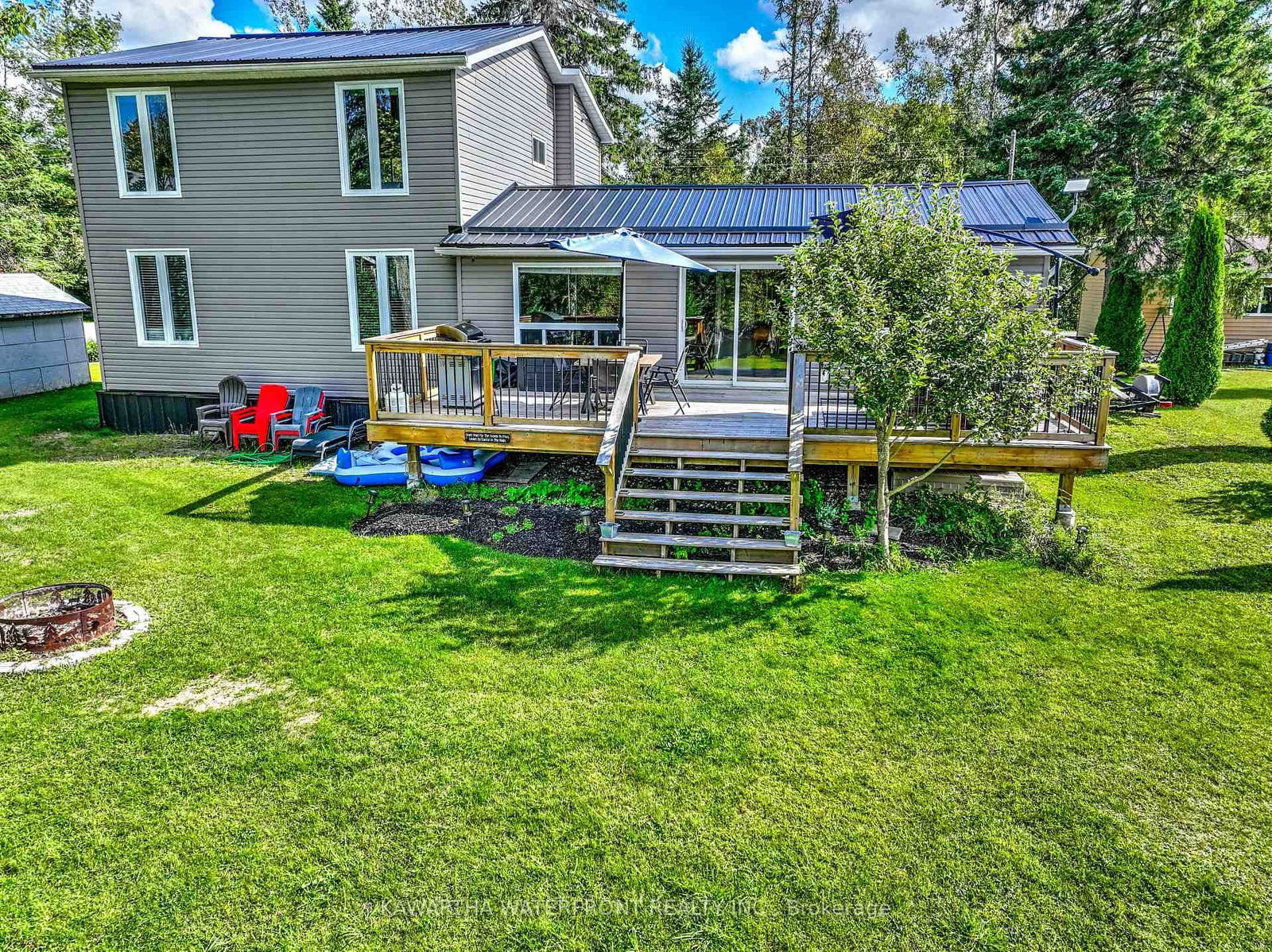 NEW LOW PRICE. This Burnt River fully winterized home or weekend getaway has been comprehensively and tastefully renovated inside and out. The home is sited on a spacious and level 0.4 acre lot that features an expansive waterside lawn that gently slopes to the river's edge where there is a large deck and dock from which one can enjoy the views up and down the river and across to the undeveloped opposite shore. And swimming is perfect in the deep, weed-free and gently flowing river. The main floor is highlighted by the living and family rooms, and a quite spectacular kitchen/dining area with beautiful cabinetry, granite counters, vaulted ceilings, large windows and a walk-out to the lovely deck. The main floor also features a bedroom, laundry and a 2 pc bathroom. Upstairs are 3 bedrooms and 4 pc bathroom. Practical features include a propane forced air furnace, central air (2021), a drilled well, and low-maintenance vinyl siding and metal roof. Starlink internet makes this property a great work-from-home location. The property is being sold turn-key with most furniture and furnishings included, and a short closing is possible.