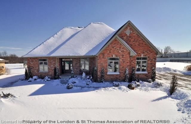 This impressive custom built ranch home is tucked away from the hustle and bustle of city noise and traffic. Situated on the outskirts of St Thomas, this open concept home is set on an enormous .88 acre lot and has been professionally landscaped. From the soaring vaulted ceilings, to the gleaming hardwood floors, this home is sure to impress your family and friends. The huge gourmet kitchen boasts high end ceramic tile flooring, a large island/breakfast bar and so many cupboards youll never run out of space! The impressive greatroom is beautiful and bright with an abundance of windows. Master bedroom retreat features a luxury 5 piece ensuite and a large walk-in closet (theres even enough room to share it with your husband!) The professionally finished basement offers a huge family room, an extra bedroom and potential for another guestroom to be built. Other features include main floor laundry, a walkout from the basement to the garage and all kinds of extra storage!