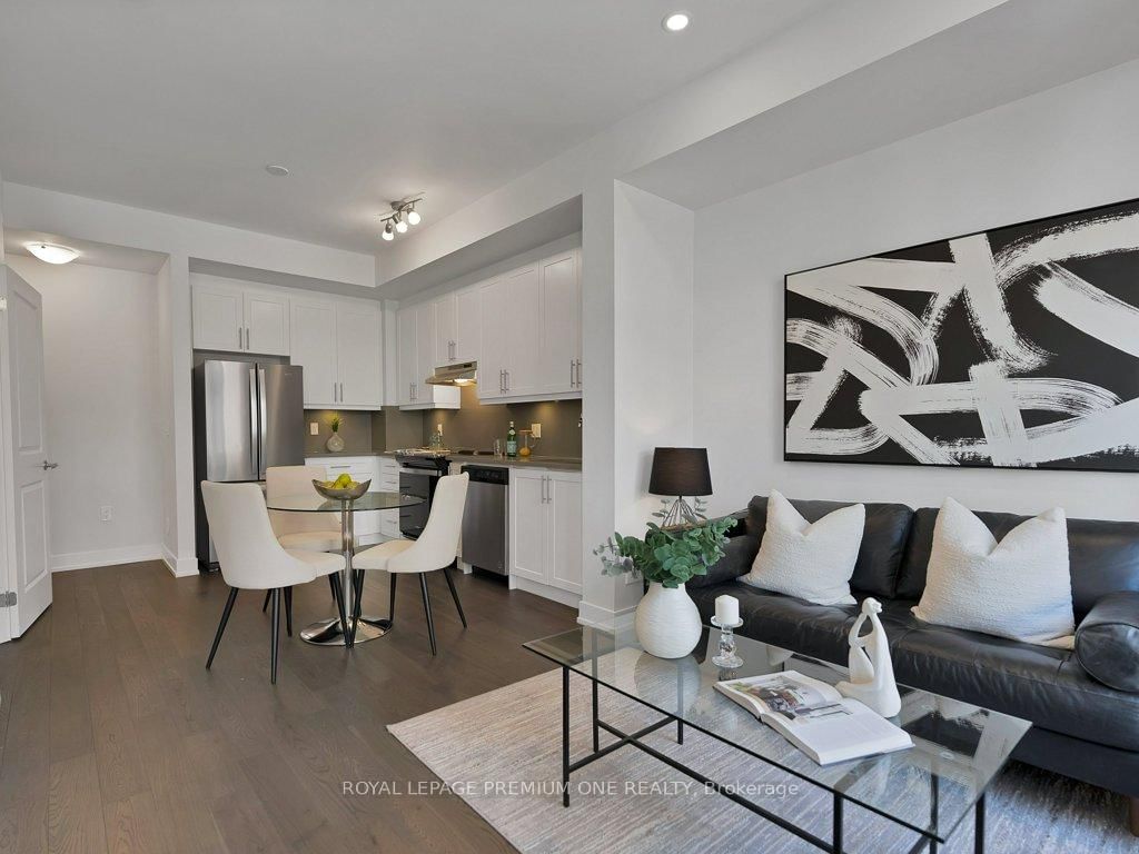 Experience refined living in this beautifully appointed stacked townhome, nestled in the sought-after Sonoma Village community of Woodbridge. This spacious 2-bedroom, 2.5-bathroom residence boasts elegant finishes, including rich hardwood flooring throughout and soaring 9-foot ceilings that enhance the open-concept layout. Designed for modern lifestyles, the bright and airy living space seamlessly blends comfort and sophistication, making it ideal for both everyday living and stylish entertaining. The gourmet kitchen flows effortlessly into the dining and living areas, offering a perfect setting for hosting family and friends. Enjoy the convenience of one underground parking spot and a prime location just steps from everyday essentials including a grocery store, Tim Hortons, popular restaurants, scenic parks, and nature trails. Top-rated schools are nearby, making it a perfect choice for families. Located in a friendly, safe, and well-established neighbourhood, this home offers exceptional connectivity. You're just a short drive to Vaughan Mills Mall, the charming shops of Kleinburg Village, and minutes from Highways 427, 400, and 407 ensuring an easy commute whether by car or public transit. Whether you're a first-time buyer, downsizer, or savvy investor, this luxury townhome offers the ultimate blend of comfort, convenience, and community.