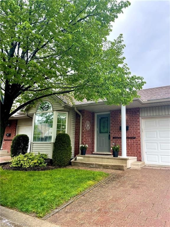 Welcome to 122 Sherwood Forest Square. This 2 bedroom, 2.5 bathroom, 2 car garage, bungalow style condo is sure to impress.The kitchen has an island offset by a beautiful gas fireplace with a casual dining area leading into the living room. Outside, there is a wrap-around porch that is sheltered with lots of greenery which optimizes privacy. The hardwood floors flow from the foyer into the dining area, living room and kitchen with white cabinets, crown moulding accents and 3 appliances. Large windows throughout offer plenty of natural light. The spacious primary bedroom checks all of the boxes with a bay window, walk-in closet and a large 5pc ensuite bathroom. There's another bedroom at the front of the house for guests or a home office, plus there is main floor laundry for added convenience. When you head to the basement, you'll find a second large living area and bathroom - perfect for visiting guests to have their own space with their own gas fireplace. This desirable North London neighbourhood has easy access to University Hospital, UWO and is steps from many shops and eateries at Sherwood Forest Mall. These one floor units built by Rembrandt Homes don't come up often in this complex, so this could be just what you've been waiting for.