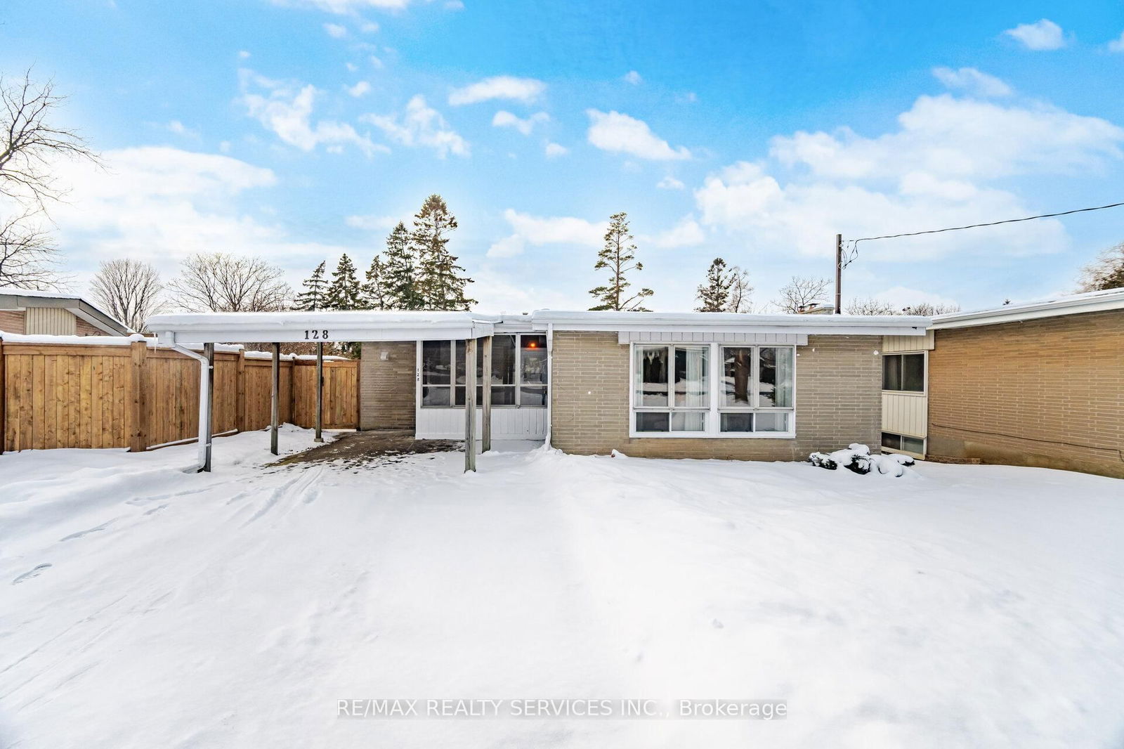Welcome to 128 Hillcrest Drive. Located in a desirable community this Bungalow is situated on a large lot with a newly constructed deck. Home has just been freshly painted throughout and a new upgraded kitchen. Commuters will love the easy access to highway 401, 407, 412, Go Transit & public transit. Walk to schools, parks, restaurants & shopping. Location Location!! New furnace, AC & humidifier with a 10-year warranty. This family Bungalow features a finished basement with large rec room & oversized bedroom plus storage & a 2pce bath/laundry, lots of potential for your family needs. Side door from kitchen leads to backyard & front yard for convenience. Sun filled living/dining room combo spans the back of the house and boasts hardwood flooring, bright windows & a patio door walk-out to the new deck overlooking the backyard. Tons of room for the kids to play, new front gate & one side of fence, fully fenced backyard. Living room has a wood burning fireplace/stove ("as is") making for a cozy feel. 3 generous sized bedrooms. Primary bedroom overlooks backyard with laminate flooring & 2 other bedrooms overlook front yard with hardwood flooring. Tons of natural sunlight coming into this family home, basement with above grade windows, enclosed front entrance, carport & driveway for 5 cars. Don't miss out on this one! Upgrades in 2025 include: deck, painted throughout, renovated kitchen, new stove, dishwasher, front gate & one side of fence, furnace, AC & humidifier. Patio door, front door, side door & kitchen windows in 2019.