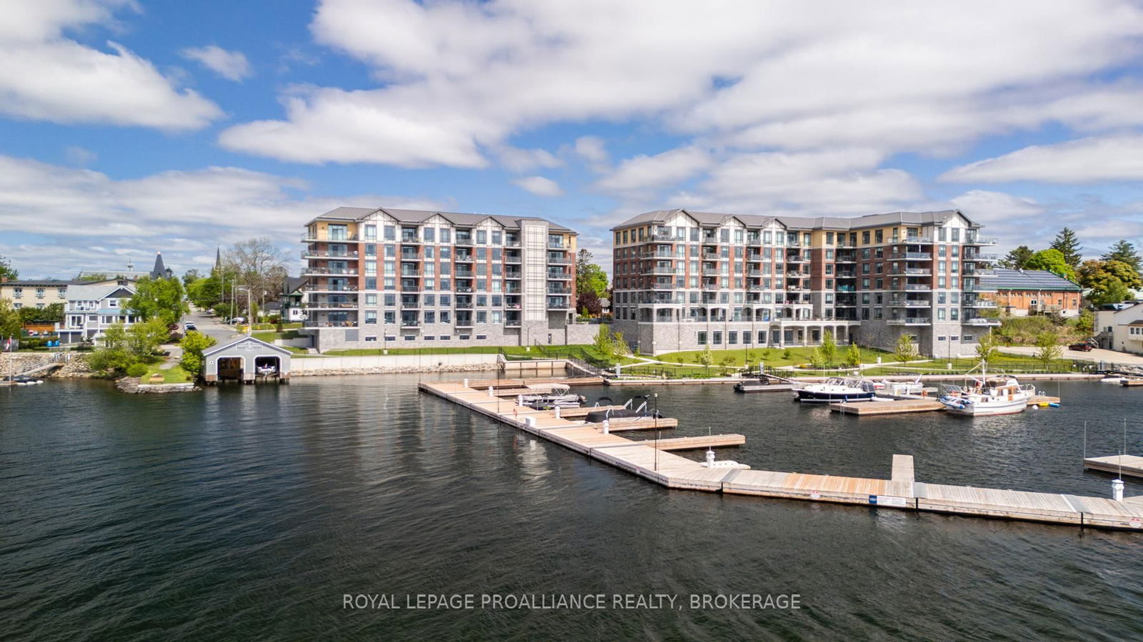 Experience exquisite waterfront living in this top-floor condo, perfectly positioned on the St.Lawrence River with panoramic views of the Thousand Islands. This one bedroom with den, one and a half bath beauty was custom designed in 2023 by Tanya Collins Design. Beautifully appointed, featuring soaring 10' ceilings and a chefs kitchen with superior finishes, including a gas range with electric oven, Fisher & Paykel Range & Refrigerator, and Remote Blinds. Step out onto your private balcony, that will allow you to add a gas connection to BBQ ideal for grilling and entertaining, with stunning waterfront vistas. Enjoy five-star amenities including a stylish party room, fitness centre and meticulously landscaped grounds. Boating enthusiasts will appreciate the private dock slip in the marina offering seamless river access. Also included is one underground parking space and a storage locker. Just a short stroll to downtown Gananoque's shops & restaurants, this is a rare blend of luxury, comfort, and location truly waterfront living at its best.