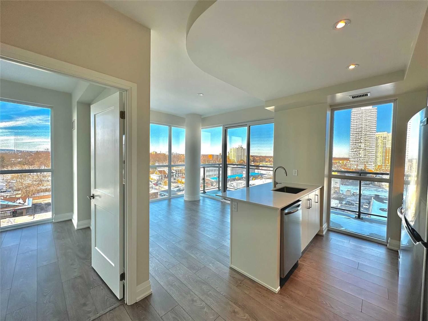 Brand New Luxury Corner Unit W 2 Bedrooms & 2 Bathrooms & Wide Welcoming Foyer. 9 Ft Cieling, Open Concept Kitchen W Potlights, S/S Appliances & Modern Backsplash, Engineered Hardwood Floor, Floor To Ceiling Glass W Great East And North Sunlight.Fantastic Location Walking To William Osler Health System Ideal For Healthcare Professionals. Prime Location!