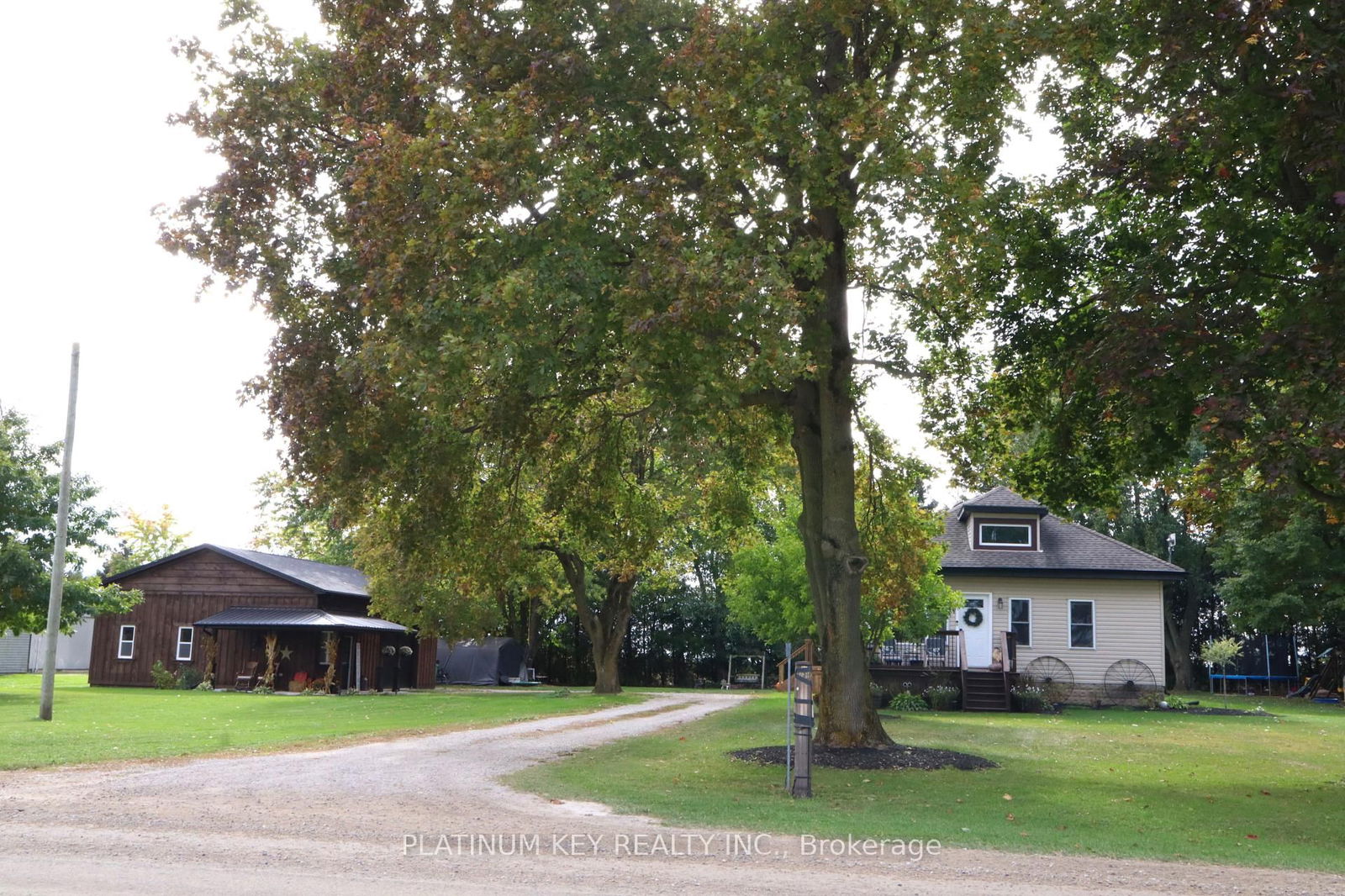 Discover your dream retreat in this beautifully renovated bungalow, renovations completed in 2024, nestled on a serene acre of treed land with new (2025) rear deck. This stunning home features three spacious bedrooms, including a primary suite with a generous walk-in closet, perfect for all your storage needs. The heart of the home is the a gorgeous kitchen, boasting ample cabinetry and a stylish island, ideal for culinary enthusiasts and entertaining guests. Enjoy cozy evenings in the large family and dining area, highlighted by a welcoming fireplace that adds warmth and charm. Separate main floor laundry with extra closet space is a bonus. In addition to the beautiful home, this property includes a remarkable 30 by 35 heated shop, built in 2024. This versatile space features high 12-foot ceilings, electricity, and an oversized 12 by 10 insulated garage door, making it perfect for hobbies, workshops, or additional storage. The shop also includes a fully finished 10 by 10 office, providing a quiet retreat for work or creative projects. This property gets even better with this spacious new deck (2025) overlooking your private-treed backyard. The basement offers a blank canvas, awaiting your creative finishing touches to transform it into your ideal space, whether it be a recreational area, home theater, or additional living quarters. With its perfect blend of comfort, functionality, and modern upgrades, this property is a rare find. Don't miss the opportunity to make this delightful bungalow and its impressive shop your forever home!