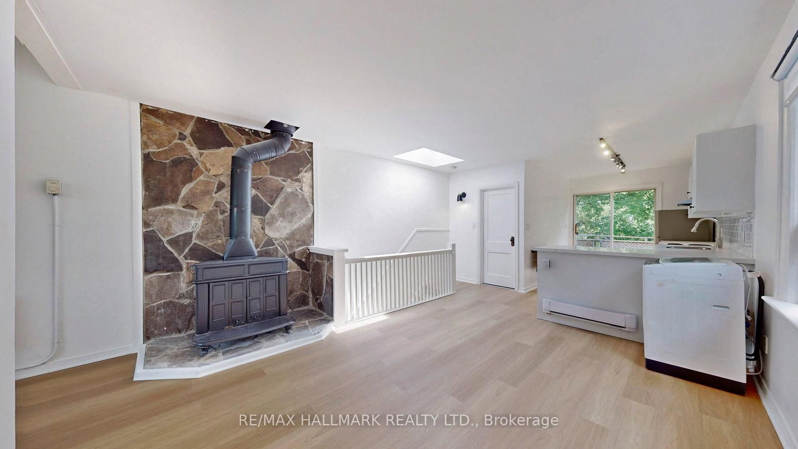 This sun drenched Beach unit feels like an oasis perched up in the trees! Second floor unit updated throughout including new flooring, a bright living space (lots of windows throughout and a gorgeous skylight), modern open concept kitchen with stone countertops, updated bathroom, and a bedroom with vaulted ceilings, ceiling fan and a closet. Open concept living has great flow with direct walk out to your south facing private back deck with lots of folliage and privacy - perfect for entertaining, BBQing & lounging. Complete with brand new ductless Air Conditioning & heat pump allow you to be in control of your own units heating/cooling. Private brand new Washer/Dryer in the unit for convenience. Located just 900 meters from the Beach this unit will allow you to take advantage of all the neighbourhoods amenities - tennis courts, outdoor olympic sized pools, bike paths, water sports, volleyball and of course, the beach! Groceries, Wine Rack and Starbucks at the bottom of the street, as well as easy access to the TTC (Woobine subway is at the top of the street, 24 hr street car at the bottom of the street, and bus stops right outside the property).