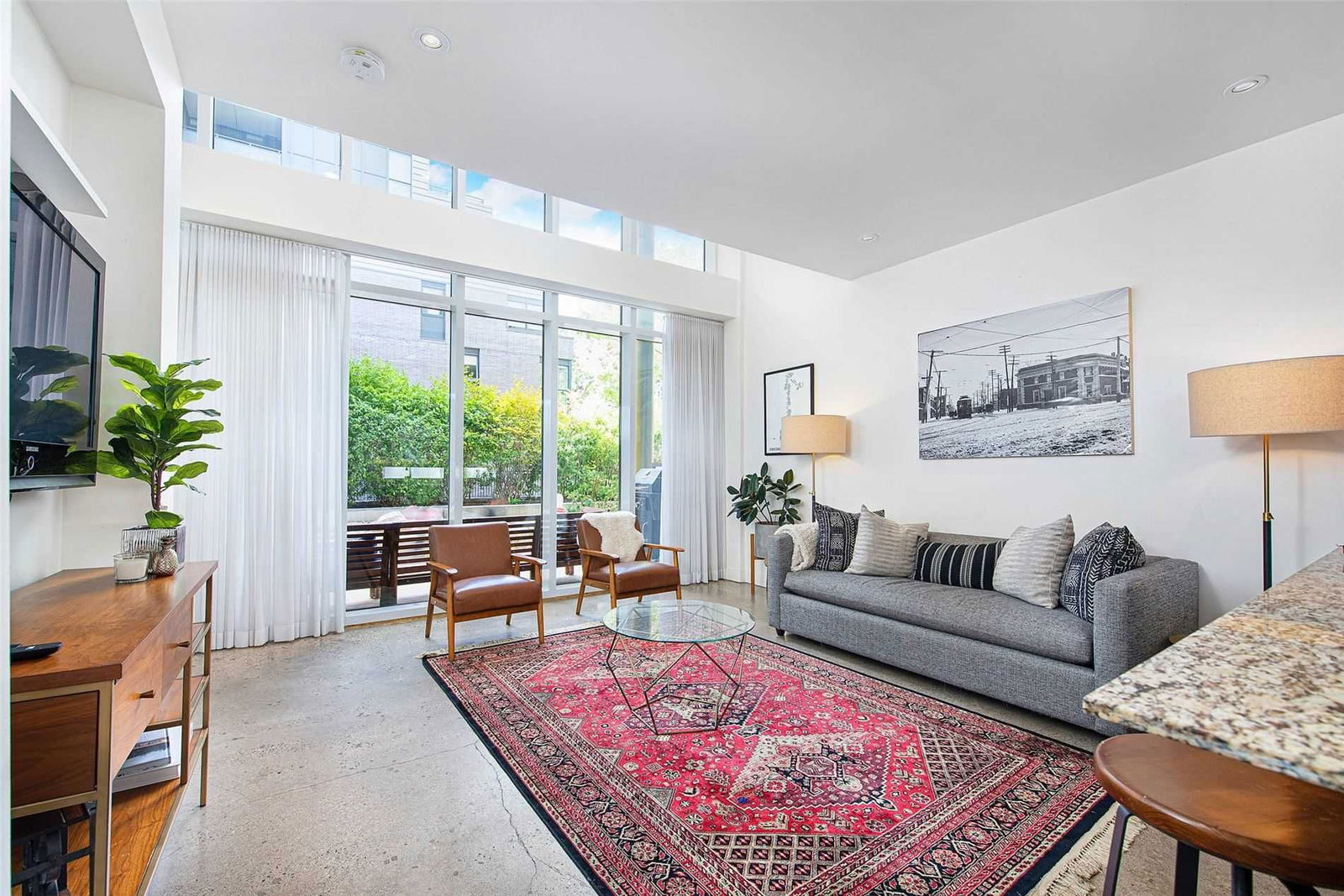 Luxurious, One-Of-A-Kind 2-Storey "Family Size" Loft In Prime Roncy! Open Concept Liv/Din/Kit W/Polished Concrete Floors & Soaring 18' Windows O/Looking Lg Priv Terrace & Inner Courtyard. Gorgeous "Chefs" Kit W/ Quartz Counters & High-End Appliances. Fully Finished Upper-Level Suits Many Uses (Bdrms, Media Rm, Guest Suite). Unique Space! Ideal Location - Walk To Subway, Up Express, High Park & Outstanding Restaurants/Shops On Roncy
