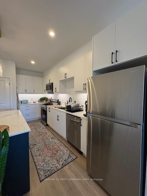 Welcome to your new home in the heart of Lambeth! This newly built stacked townhouse on the top level offers modern living at its finest. Enjoy the convenience of easy highway access and the tranquility of a family-oriented community. As you step into this two-bedroom residence, you're greeted by an open-concept layout that seamlessly blends style and functionality. The kitchen boasts a sleek eat-at island, complemented by a walk-in pantry, stylish lighting, and a contemporary backsplash - perfect for both casual meals and entertaining guests. Both bedrooms feature ensuites and walk-in closets, ensuring comfort and convenience. Not to mention the laundry being nearby on the second level! The top-level location provides an added layer of privacy, while the highlight of the property is the spacious private terrace - an ideal retreat for outdoor relaxation and enjoyment! With two dedicated parking spaces, the practicalities of daily life are effortlessly managed. The $2300 monthly rent, plus utilities, makes this an attractive opportunity for those seeking a contemporary lifestyle in a sought-after location. 2 Assigned parking spots. A one-year is required.