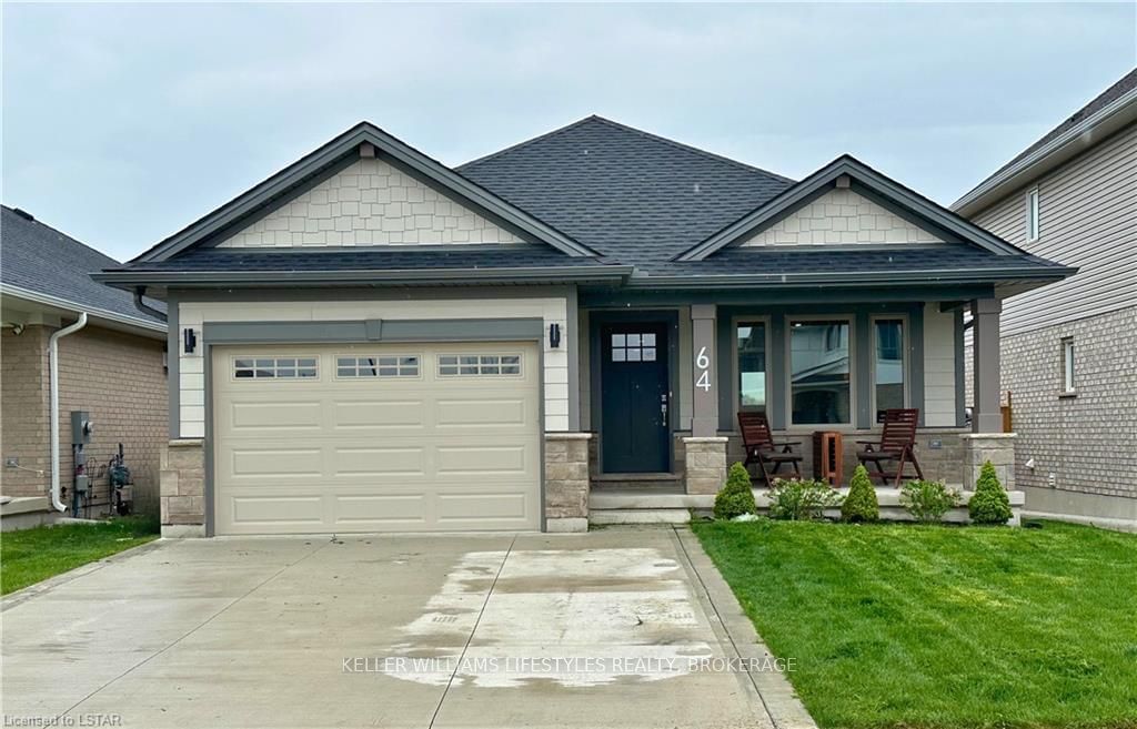 Welcome to 64 Styles Drive in St. Thomas! This great bungalow is now available for rent. Crafted just a year ago by Doug Tarry Homes, this residence has 2+2 bedrooms and 3 bathrooms. Step inside to discover a generously sized primary bedroom featuring a lavish 3-piece ensuite and a walk-in closet. The main floor offers laundry and a thoughtfully designed kitchen with white quartz countertops and a breakfast bar, and a spacious pantry. The fully finished basement featuring a lower level family room, 2 additional bedrooms, a den, a 3-piece bathroom, and ample storage. This rental includes a 1.5 car garage, providing ample space for your vehicles and outdoor equipment. Covered porches on both the front and back of the home. Seize the opportunity to make this stunning rental property your home sweet home. Schedule a viewing today!