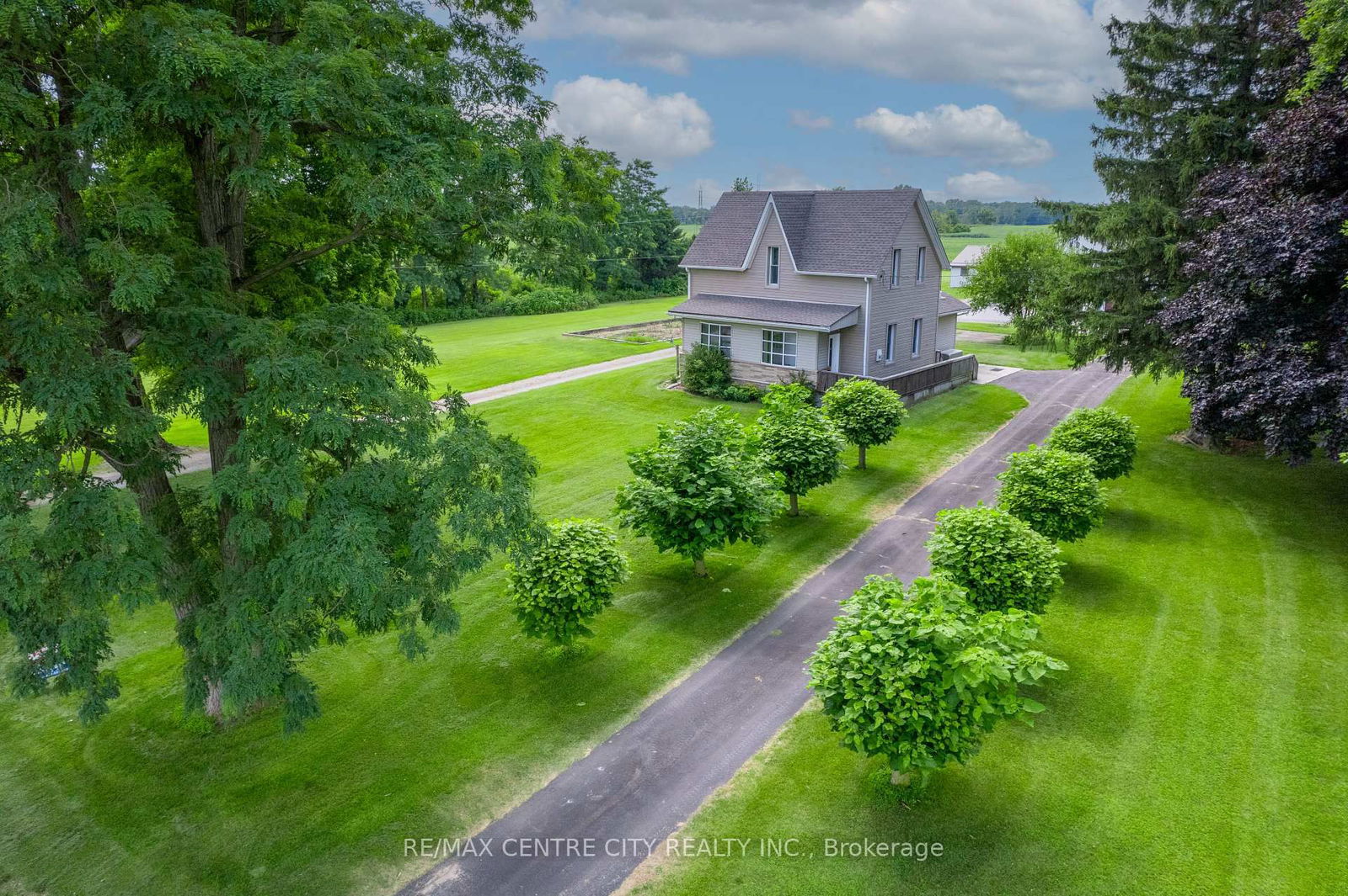 This inviting home, surrounded by farmer's fields, enjoys a beautiful rural setting just outside of Strathroy. Situated on a picturesque 1-acre lot with a 2-car detached garage, surrounded by mature trees and featuring a delightful wrap-around porch. Inside, the main floor includes a cozy wood stove in the back living room and a refreshed kitchen with updated countertops and flooring. New flooring and carpet were installed two years ago. Upstairs, there are three bedrooms, including a spacious master bedroom with ample closet space and a 2-piece bath. The upstairs was gutted and remodelled about 15 years ago. Recent updates include a septic system update within the last 5 years, new siding in 2010, and new shingles in 2022. The basement is equipped with spray foam insulation. Don't miss the opportunity to own this stunning country retreat, where peace and privacy await welcome to the country!
