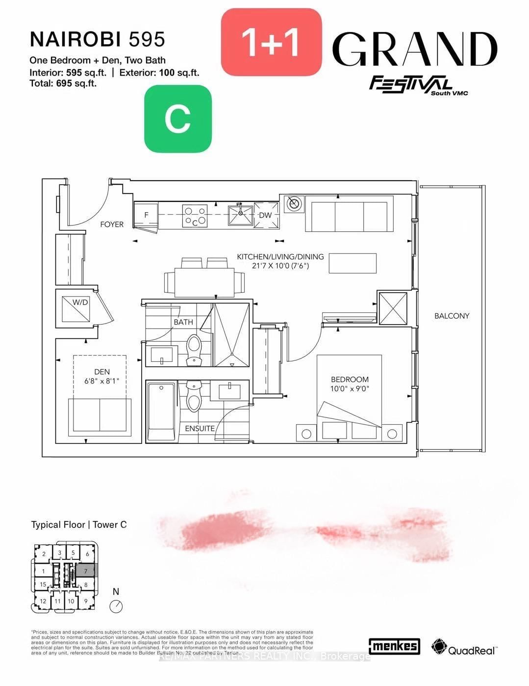 brand-new 1+1 den at Festival Tower C, 2-bath, den can be used as a second bedroom, great east views. 9-foot ceilings, Open concept kitchen modern kitchen, quartz countertops, premium appliances. Located in the heart of Vaughan Metropolitan Centre, just minutes to VMC Subway, VIVA, Vaughan Mills, IKEA, Costco, restaurants, and entertainment. Perfect for luxury, convenience, and city living.