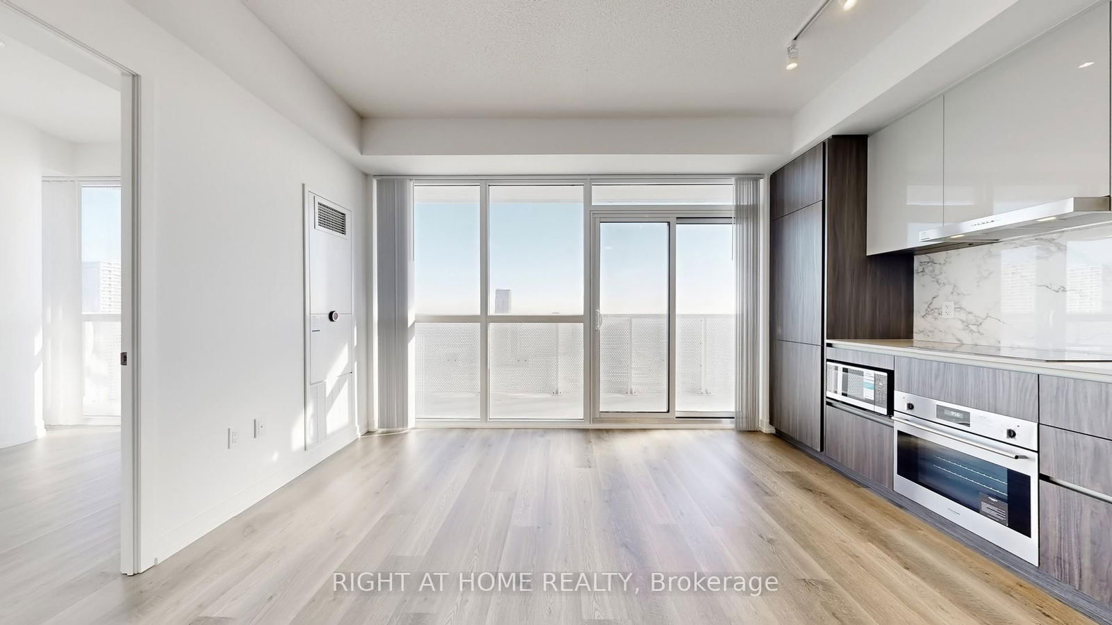 Experience elevated living on the 50th floor of the prestigious Grand Festival Condos. This bright and spacious 2-bedroom, 2-bathroom corner suite features a highly desirable split-bedroom layout and stunning unobstructed panoramic views through floor-to-ceiling windows. Step out onto your rare wraparound balcony and enjoy breathtaking skyline views - the perfect space for morning coffee or evening relaxation high above the city. The modern open-concept kitchen is finished with sleek cabinetry, quartz countertops, and built-in appliances, flowing seamlessly into the living and dining area - ideal for both entertaining and everyday comfort. The primary bedroom offers generous closet space and a private ensuite bathroom. The second bedroom is well-sized, perfect for guests, a home office, or small family living. A second full bathroom adds convenience and flexibility. Building Amenities Include: 24-hour concierge, Fully equipped fitness centre, Party & lounge spaces, Outdoor terrace, Truly Premium lifestyle amenities. Located in the heart of Vaughan Metropolitan Centre, steps to TTC subway, VIVA transit, restaurants, shopping, and easy access to Highways 400 & 407.A rare opportunity to lease a high-floor corner unit with spectacular views in one of Vaughan's newest luxury residences.