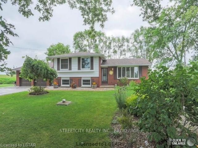 Welcome to a unique country property, close to the 402 for easy highway access, but only 10 minutes to London! Not only does this home feature a partially fenced large (just under an acre)lot, it also has A2 zoning which allows a hobby farm, dog kennel and many other possibilities, you only have to ask! Very spacious home has been exceptionally well maintained & updated over the years. Some of which include a newer roof, garage doors, fencing, windows & inside, the hardwood floor has been re-surfaced, appliances are included. The home is tastefully decorated featuring a modern luxury bath. Storage space is abundant! Lower level has large above ground windows with a spacious family room, laundry area & features walkout to the yard & covered patio area. Outdoor storage shed/workshop with hydro includes a riding lawn mower, trailer & a sweeper. Its all here!